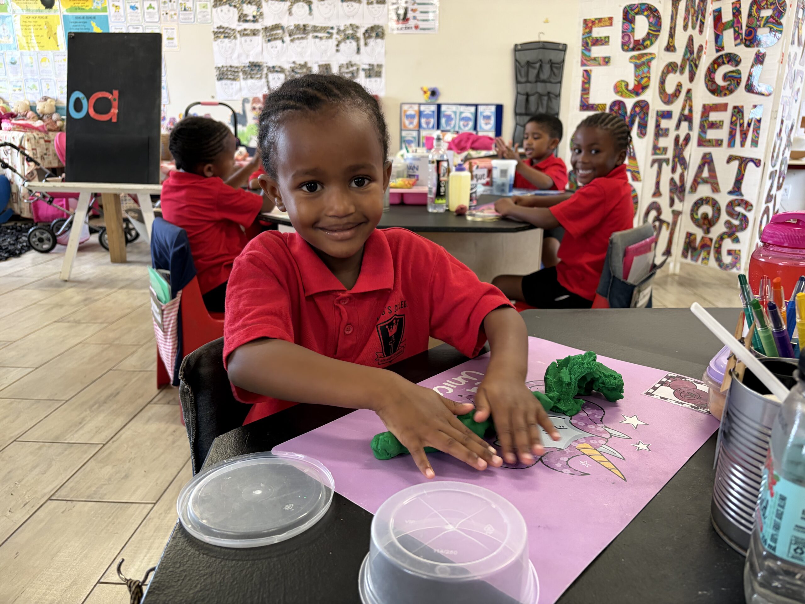 Juf Annelize Eloff is een ontzettend lieve en geduldige juf, die op een leuke manier, met veel spelletjes, liedjes en knutsels, de kinderen heel veel leert. De kinderen zijn gek op haar.