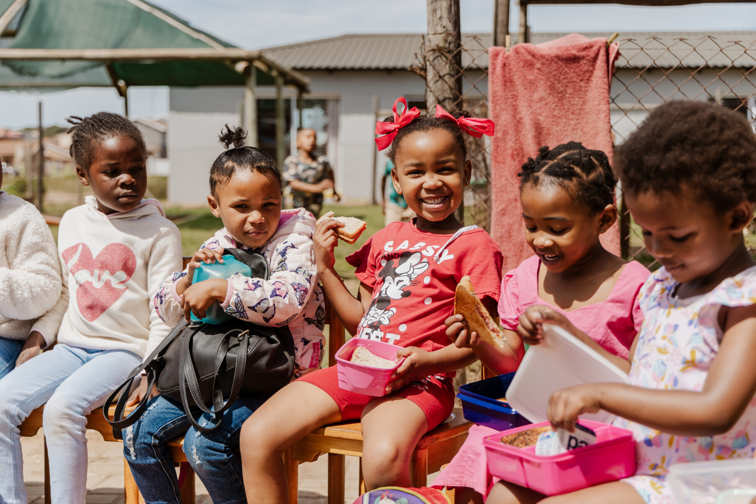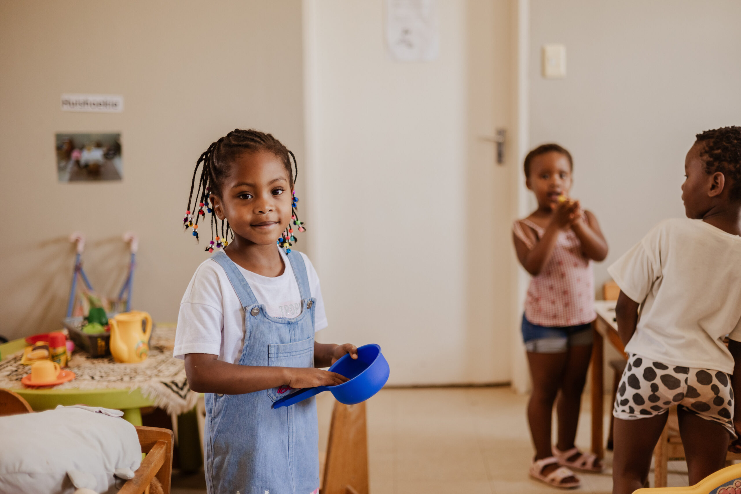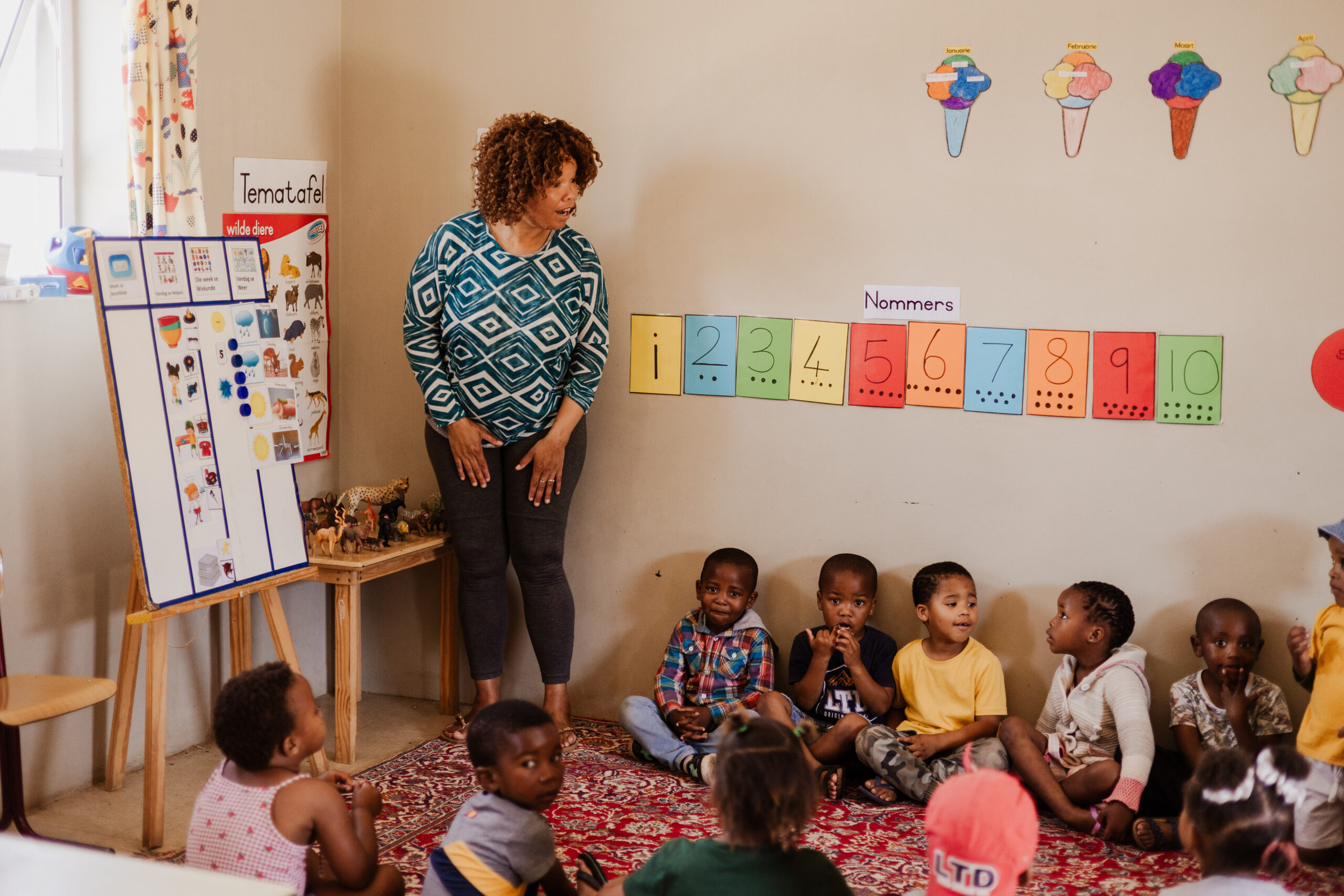 Ook taalontwikkeling is op deze leeftijd erg belangrijk, omdat de kinderen thuis met drie talen te maken hebben: Engels, Afrikaans en Xhosa. Er wordt dus veel voorgelezen in de klasjes. Bijbelverhalen zijn favoriet bij de kinderen.
